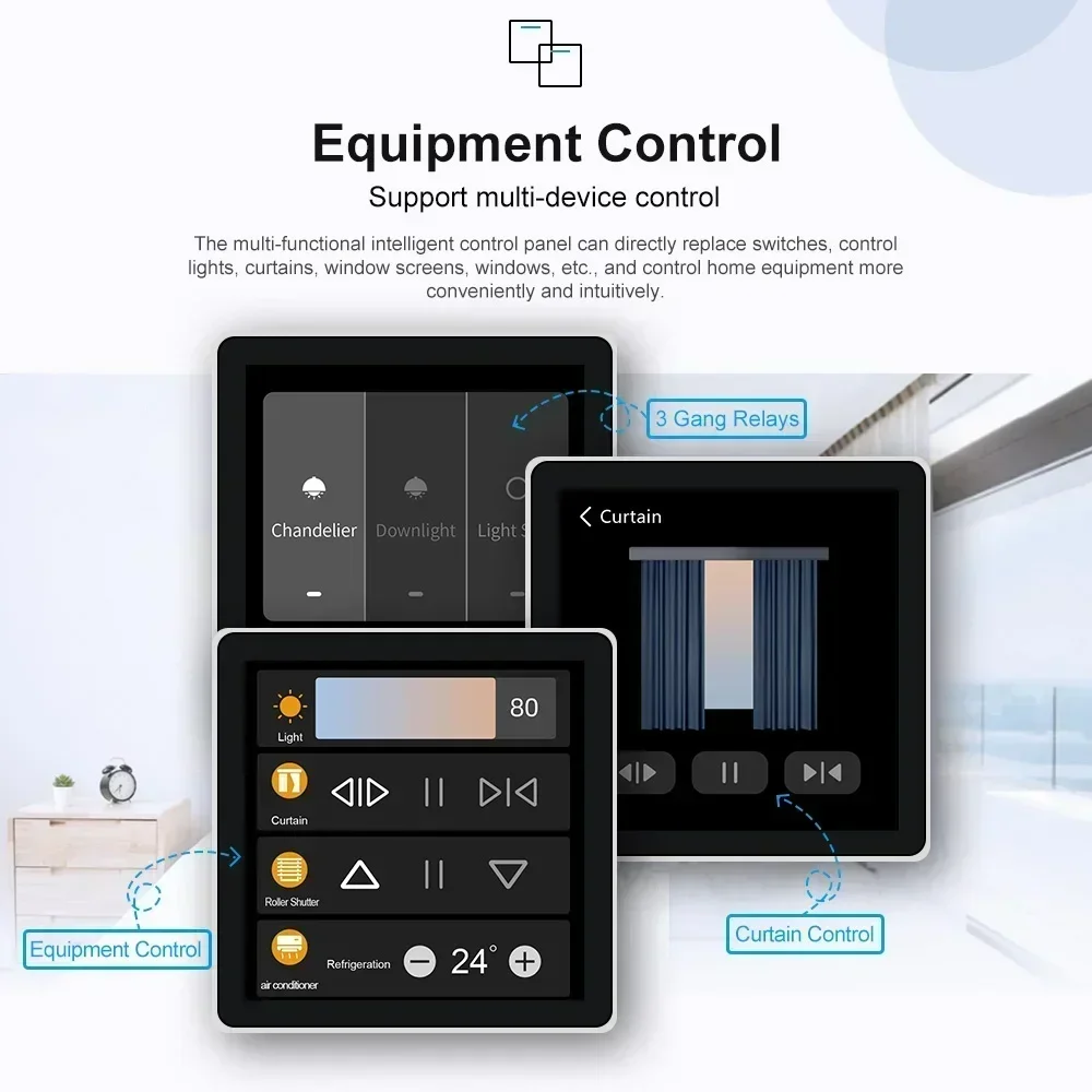 The design of a 3.4 inch high-definition LCD, IPS, and multi touch screen, paired with an automatic light sensor, is very suitable for modern intelligent lifestyles. The wall mounted design is compatible with European standard wall boxes, making it easy to install and complete in seconds.
